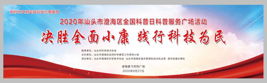 9月27日上午,澄海區(qū)全民科學(xué)素質(zhì)工作領(lǐng)導(dǎo)小組組織有關(guān)部門(mén)、企業(yè)單位在澄海奧飛市民廣場(chǎng)舉辦2020年全國(guó)科普日科普服務(wù)廣場(chǎng)活動(dòng)。市科協(xié)主席馬清亮,區(qū)委常委、統(tǒng)戰(zhàn)部部長(zhǎng)林典發(fā)等領(lǐng)導(dǎo)到場(chǎng)指導(dǎo)。區(qū)委政法委、區(qū)工信局、區(qū)衛(wèi)健局、區(qū)環(huán)衛(wèi)局、區(qū)氣象局、區(qū)科協(xié)、區(qū)總工會(huì)、團(tuán)區(qū)委、區(qū)婦聯(lián)、澄華街道和部分高新技術(shù)企業(yè)、特色農(nóng)業(yè)企業(yè)、食品企業(yè)、教育機(jī)構(gòu)以及科普志愿者參加了活動(dòng)。
