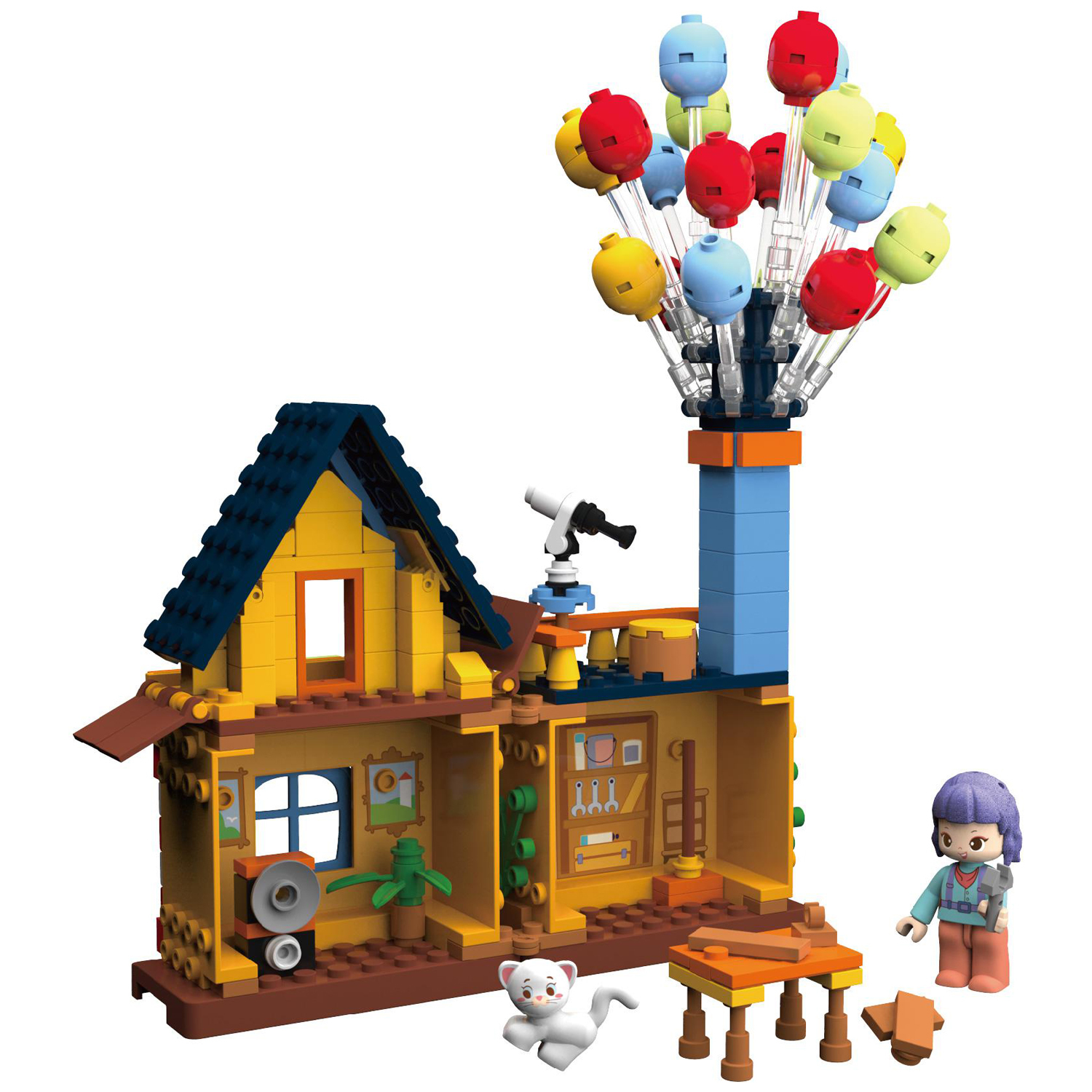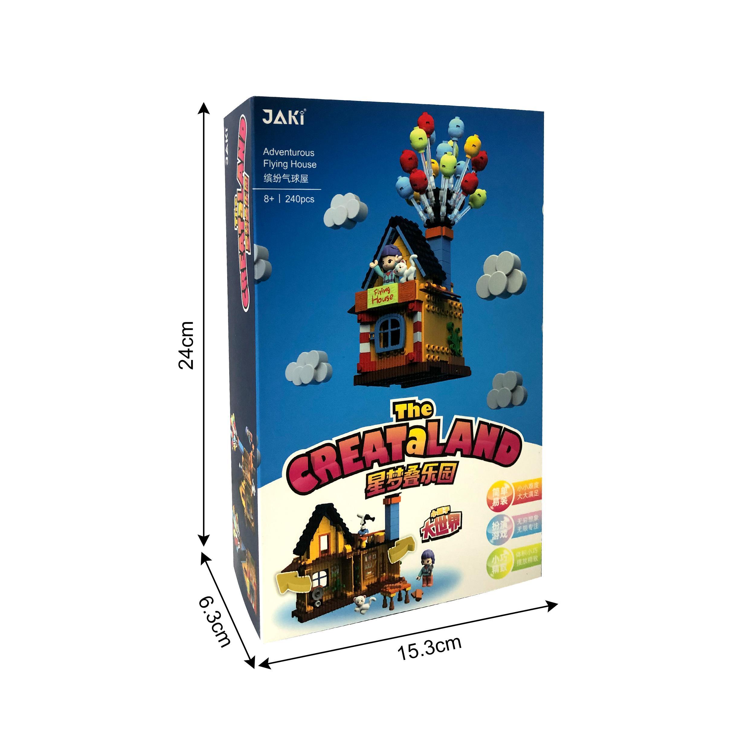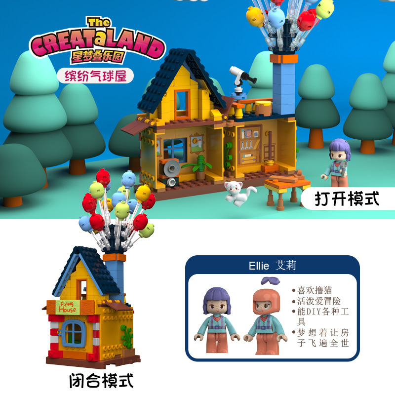 看過《飛天環(huán)游記》的小孩子也許會想,自己家的小屋子如果也能系上氣球,朝著夢想飛去那該有多好?,F(xiàn)在就讓繽紛氣球屋來實現(xiàn)孩子們的小小心愿吧!首先,我們需要先把小屋子拼搭出來,這是一所雙層小屋,小屋上邊還有一個長長的煙囪。讓小屋飛起來可是一項偉大的工程項目,找找看工具箱里有哪些我們需要的工具吧!爬上二樓的瞭望臺,望遠鏡可以幫助我們制定路線,一切準(zhǔn)備就緒,在煙囪上插上氣球,準(zhǔn)備起飛吧!